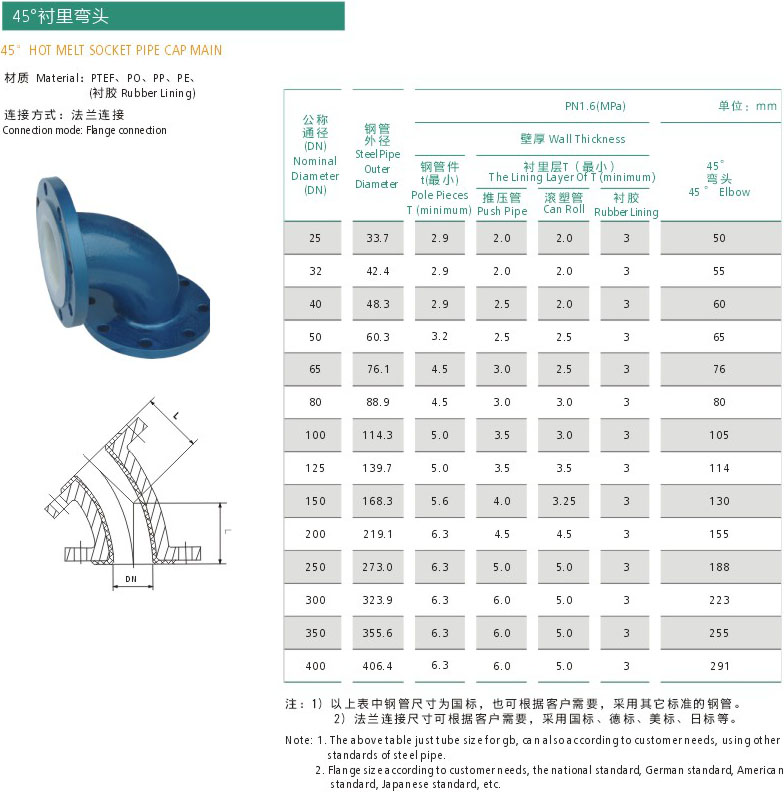 45°襯里彎頭